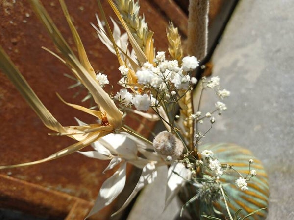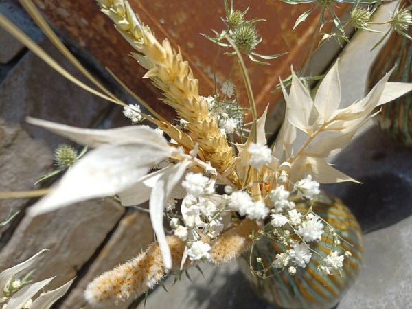 vaasje met droogbloemen